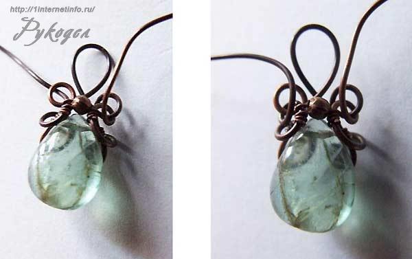 Используем проволоку 0.8 — 1.2 мм и тонкую 0.3 — 0.5 мм. Толщину проволоки и цвет подбирайте по своему усмотрению. Уточнять не буду, параметры проволоки зависят от величины стеклянной подвески и ваших предпочтений. Инструмент используется основной — бокорезы (кусачки), круглогубцы и утконосы. Смотрите фото урок, изучайте, создавайте уникальные и неповторимые украшения своими руками.